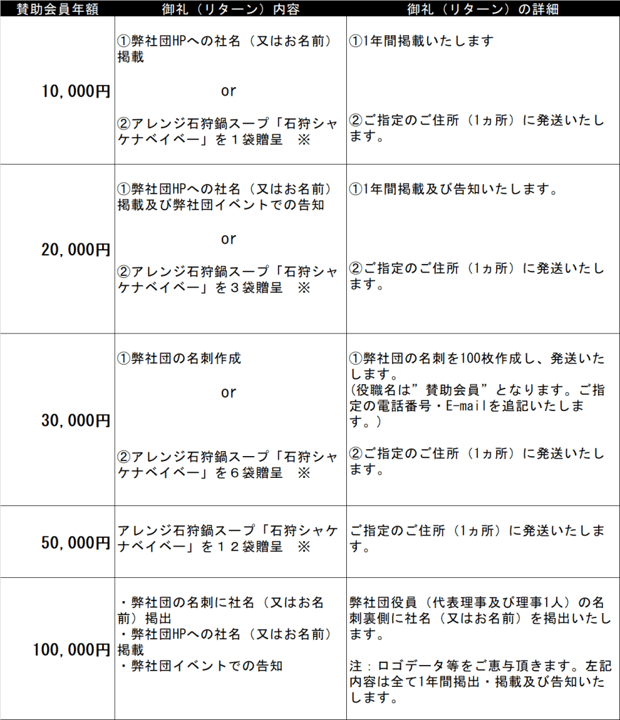 つきましては、弊社団の運営を金銭的にサポート頂ける賛助会員様を募集いたします。個人でも法人でも承りますので、何卒お願い申し上げます。